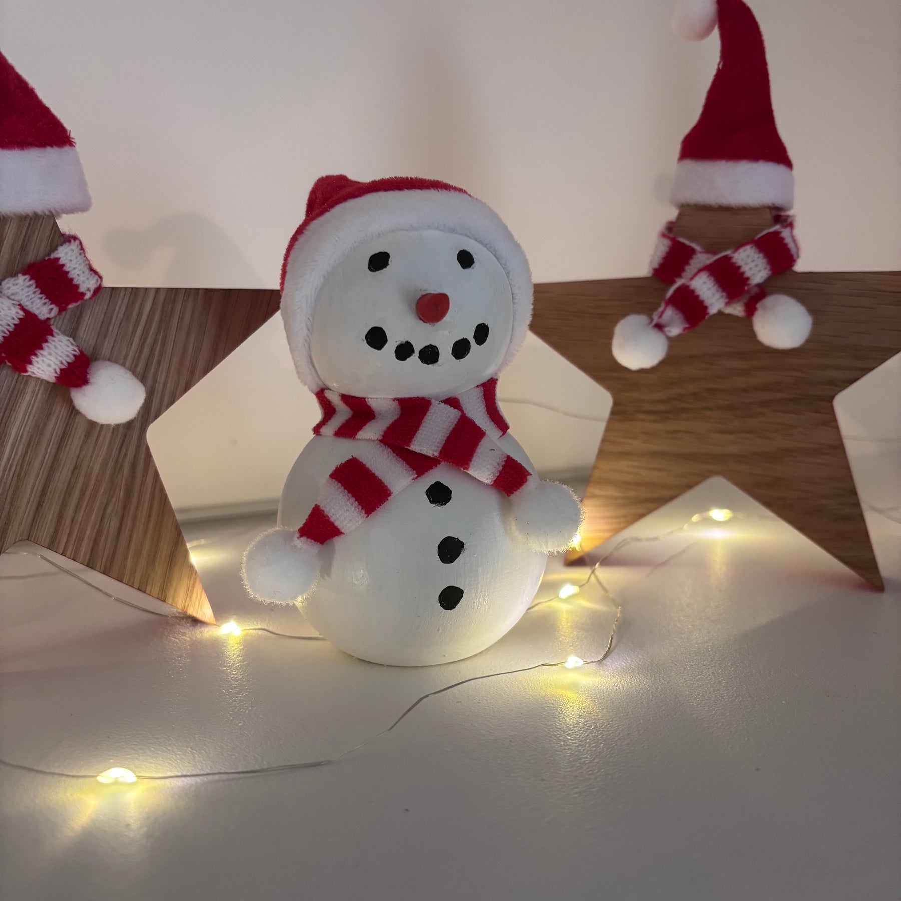 Crafted from solid wood, this snowman decoration is available in a classic white painted finish or a natural plain option. It features a charming Santa hat and scarf, adding festive character and warmth to your holiday décor. Durable and elegantly simple, it’s designed to bring a timeless seasonal touch to any setting.
